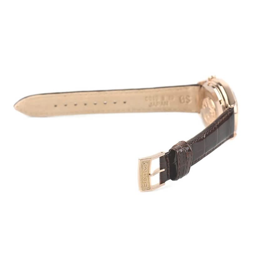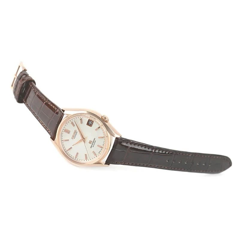 Experience the elegance of the Grand Seiko SBGR002, a splendid timepiece that embodies the artistry of Japanese watchmaking. Adorned with a luxurious gold dial and complemented by a classic black leather strap, this watch is a testament to refined sophistication and timeless style. • Brand: Grand Seiko • Dial Color: Gold • Movement Type: Automatic • Strap Material: Leather • Water Resistance: 50M • Condition: Pre-owned — excellent condition, no noticeable scratches. This exquisite watch is not only a statement of style but also a reliable companion for any occasion.