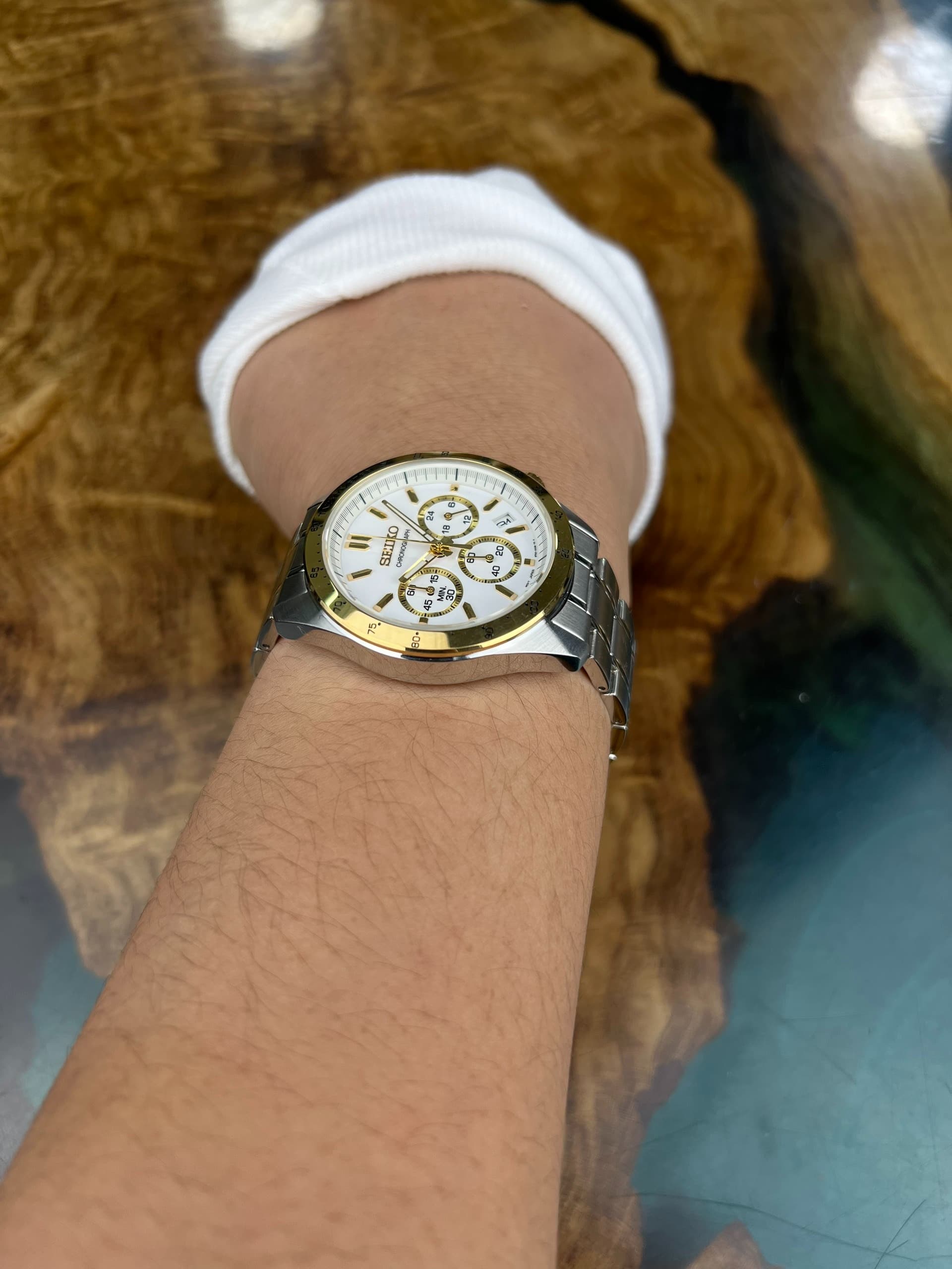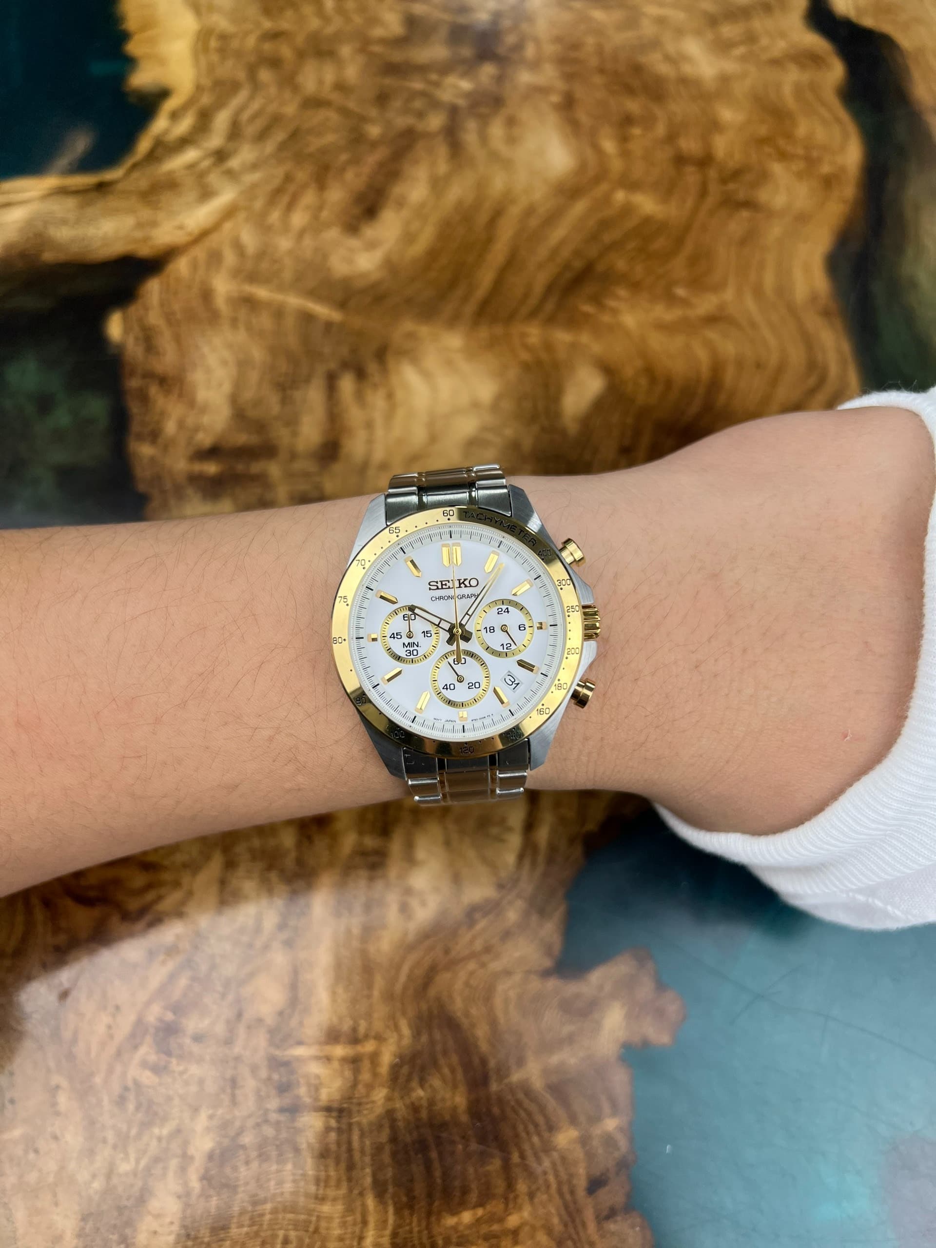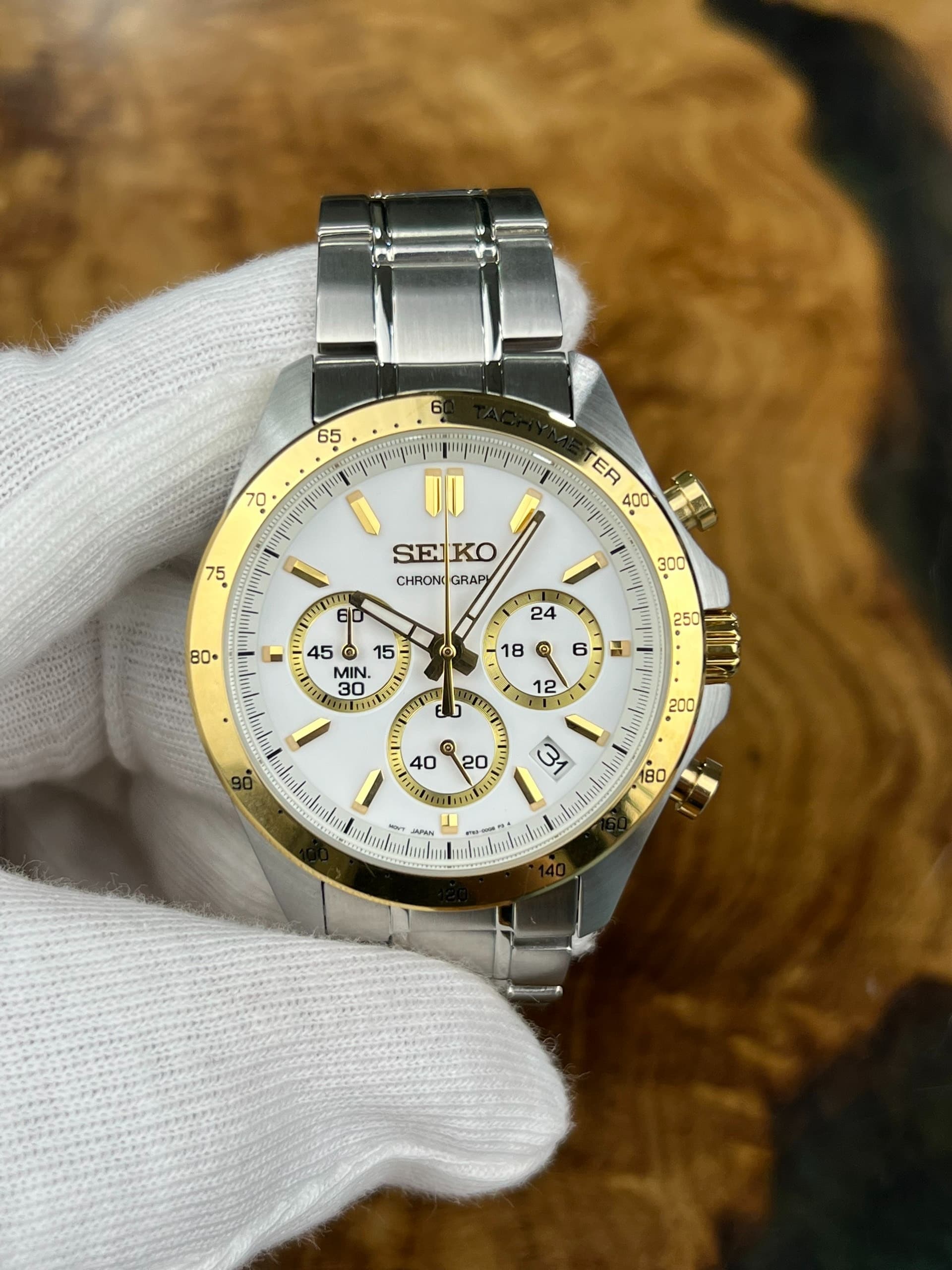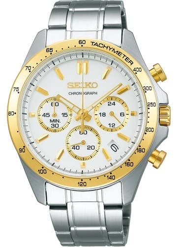 Seiko Spirit Chronograph 40mm White Dial with Gold Accents & Steel Bracelet